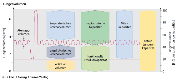 Mittels Spirometrie werden Atemzugsvolumen, inspiratorisches Reservevolumen, Einsekundenkapazitiät, MEF50, Vitalkapazität, und exspiratorisches Reservevolumen gemessen. Bei allen Formen von Asthma, ACOS und COPD eine verpflichtende Untersuchung